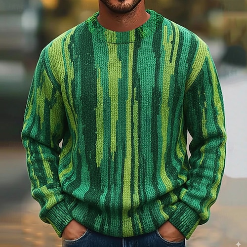 Per uomo Blocco di colori Astratto Maglione Maglieria Girocollo Casual Vacanza Streetwear Quotidiano Stampa 3D Lavoro a maglia Tenere al caldo Manica Lunga Primavera Autunno Inverno Blu Verde Multi