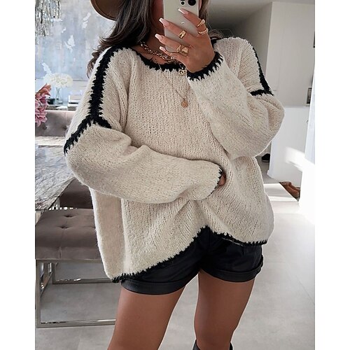 Per donna Felpa Maglione Streetwear Casual Blocco di colori Girocollo Patchwork Lavorato a maglia Manica Lunga Top Regolari Maglia Quotidiano Ferie Uscire Nero Cachi Autunno Inverno