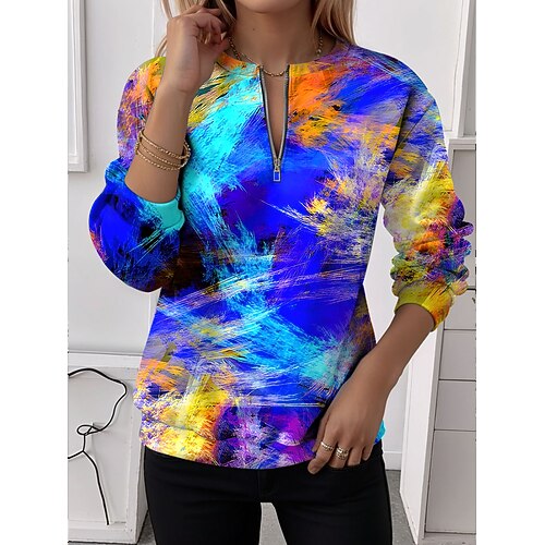 Per donna Felpa Pullover Felpe con cerniera Grafico Blocco di colori Moda Casual Manica Lunga Girocollo Mezza zip Top Regolari Streetwear Abbigliamento Quotidiano Cerniera Stampato Rosa Blu Arancione