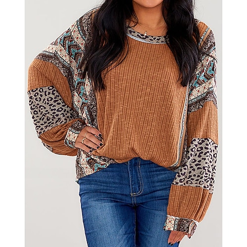 Per donna Felpa Pullover Blocco di colori A righe Casual Manica Lunga Girocollo Top Regolari Abbigliamento Quotidiano Ferie Uscire Patchwork Rosso violaceo Marrone chiaro Autunno Inverno