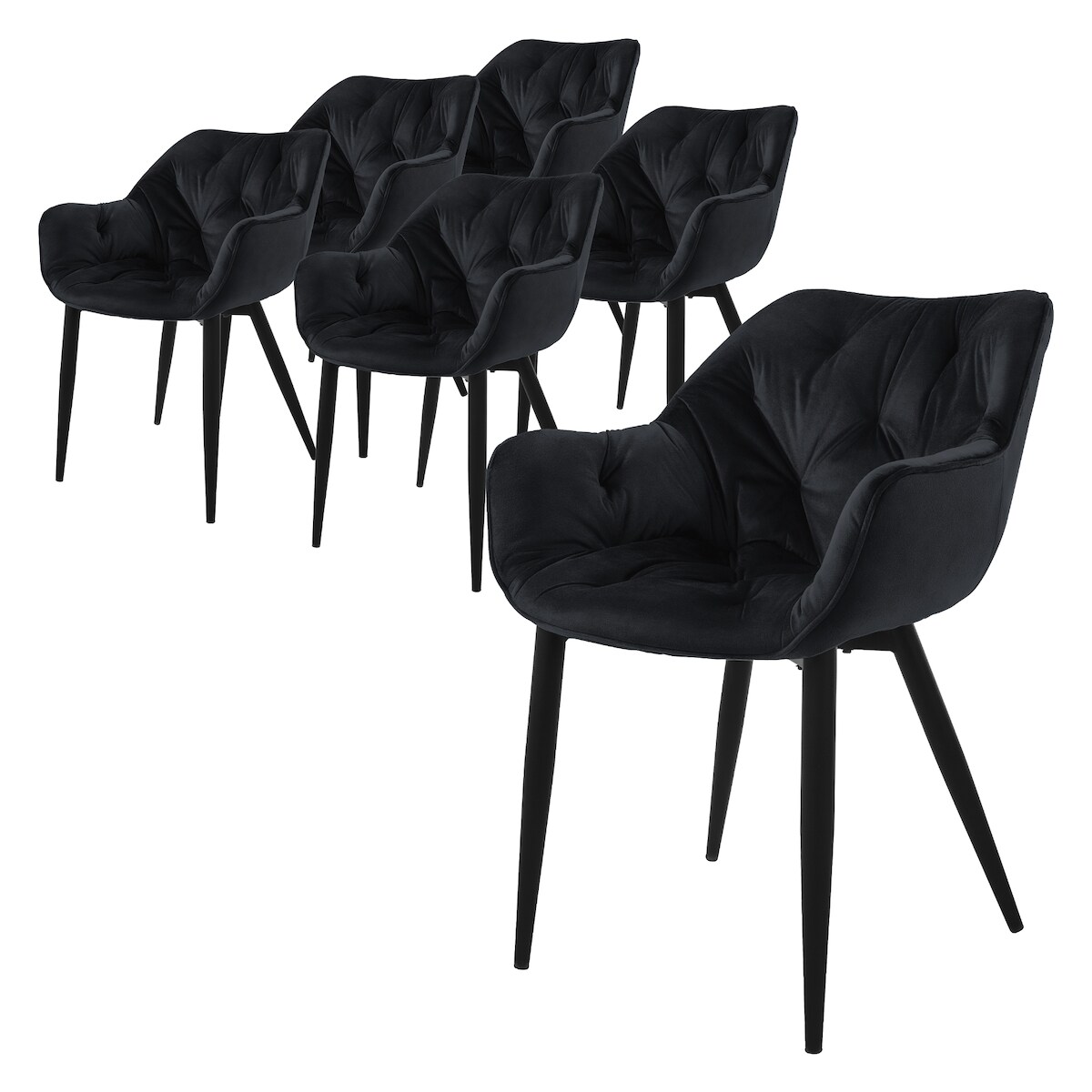 ML-Design – Esszimmerstühle 6er Set – Schwarz Samt | gesteppter Sitz, Arm- & Rückenlehnen