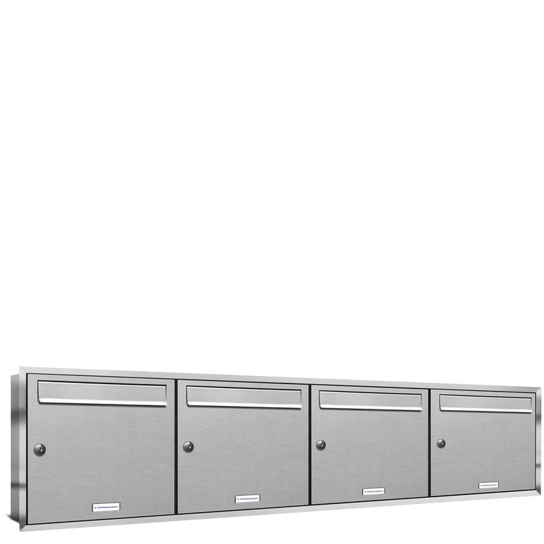 AL Briefkastensysteme 4 Fächer Premium Edelstahl Unterputz Briefkasten Anlage für Post A4, modern, robust, wetterfest, Artikelnummer: 331T4U4
