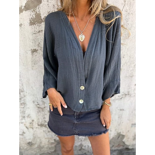 Per donna Camicie di cotone e lino Semplice Quotidiano Moderno Manica 3/4 Colletto a Camicia Top Regolari Quotidiano Bottoni Nero Arancione Marrone Cachi Grigio Estate Primavera Autunno