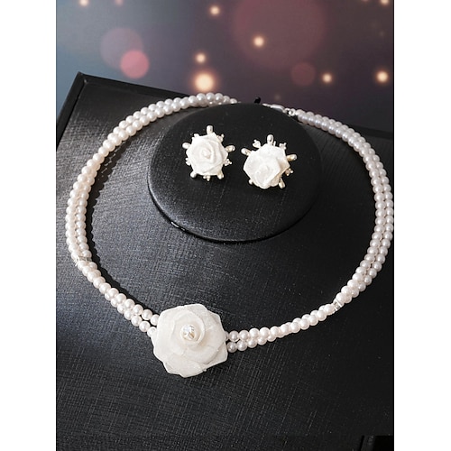 set di gioielli da donna con fiori di perle: elegante collana in tessuto con rose e orecchini abbinati per le feste di Capodanno celebrazioni speciali