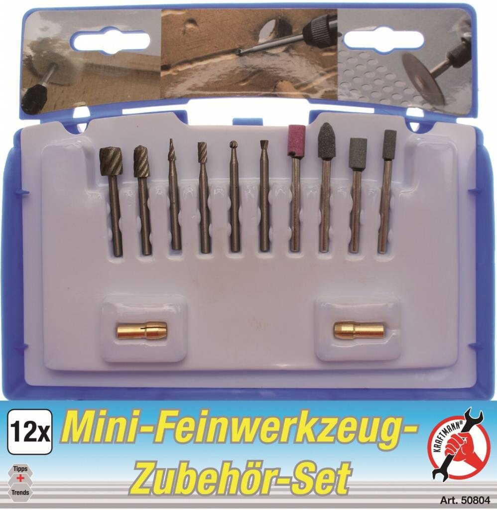 Kraftmann 50804 Mini Feinwerkzeug Zubehör Set 3mm-Schaft 12tlg in Kassette