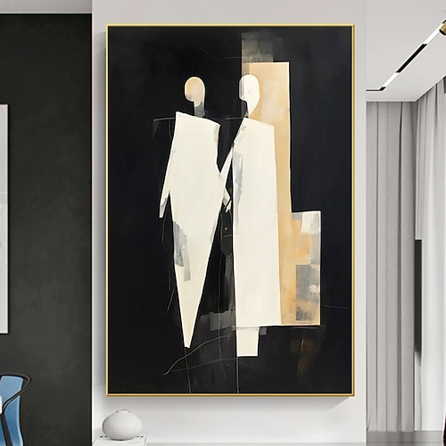 Fatto a mano Dipinto a Olio Dipinta a mano Verticale Astratto Persone Contemporaneo Moderno Senza telaio interno (senza cornice)