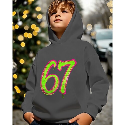 Unisex 3D Grafico Gergo divertente 67 Felpa con Cappuccio Maglione Manica Lunga Stampa 3D Primavera Autunno Inverno Sport Moda Streetwear Bambini 4-12 Anni Con cappuccio Casuale Quotidiano All'aperto