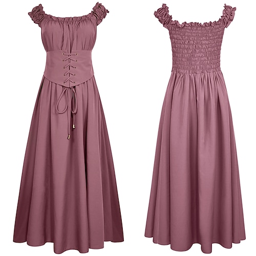 Retrò Vintage Medievale Rinascimento Midi Vestito Manica a Campana Vichingo Cavaliere Celtico Elfico Senza spalline Ispirato alla Reggenza Costume Per donna Celtico Fantasia Halloween Carnevale