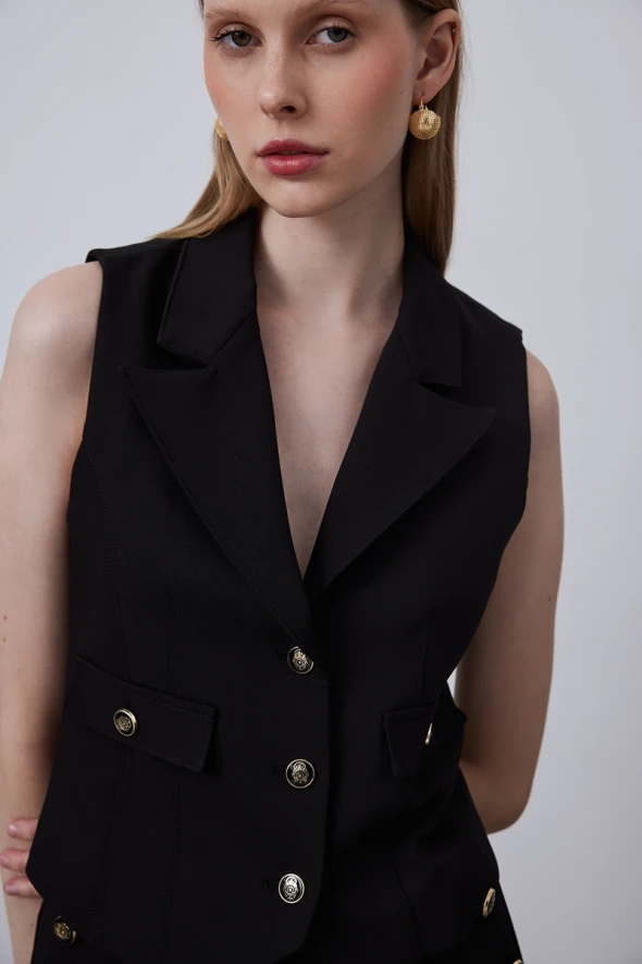 Gusto Womens Tailored Waistcoat With Buttons - Black - Size Large | Gusto Sale | Discount Designer Brands