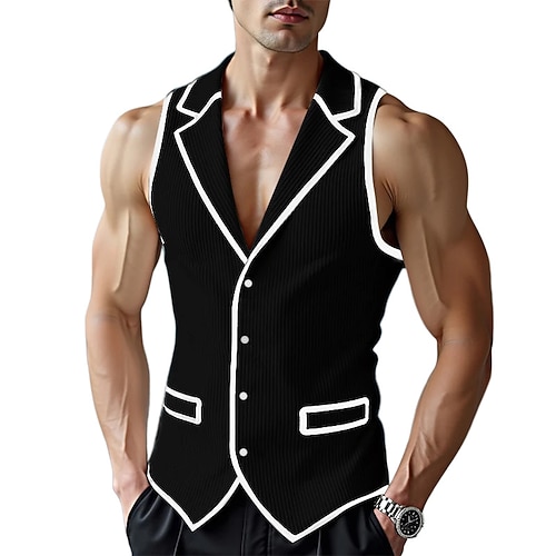 Da uomo Canotta Camicia di Velluto a Coste Maglietta senza maniche Senza Maniche Girocollo Estate Primavera Blocco di colori Striscia di Fossa Moda Designer Muscolo Bottoni Davanti All'aperto Uscire