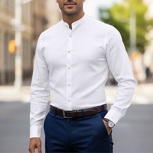 Per uomo Camicia Camicia elegante Camicia con Bottoni Blocco di colori Quotidiano Affari Blu chiaro Nero Bianco Giallo Manica Lunga Collo alla coreana Tutte le stagioni Abbigliamento