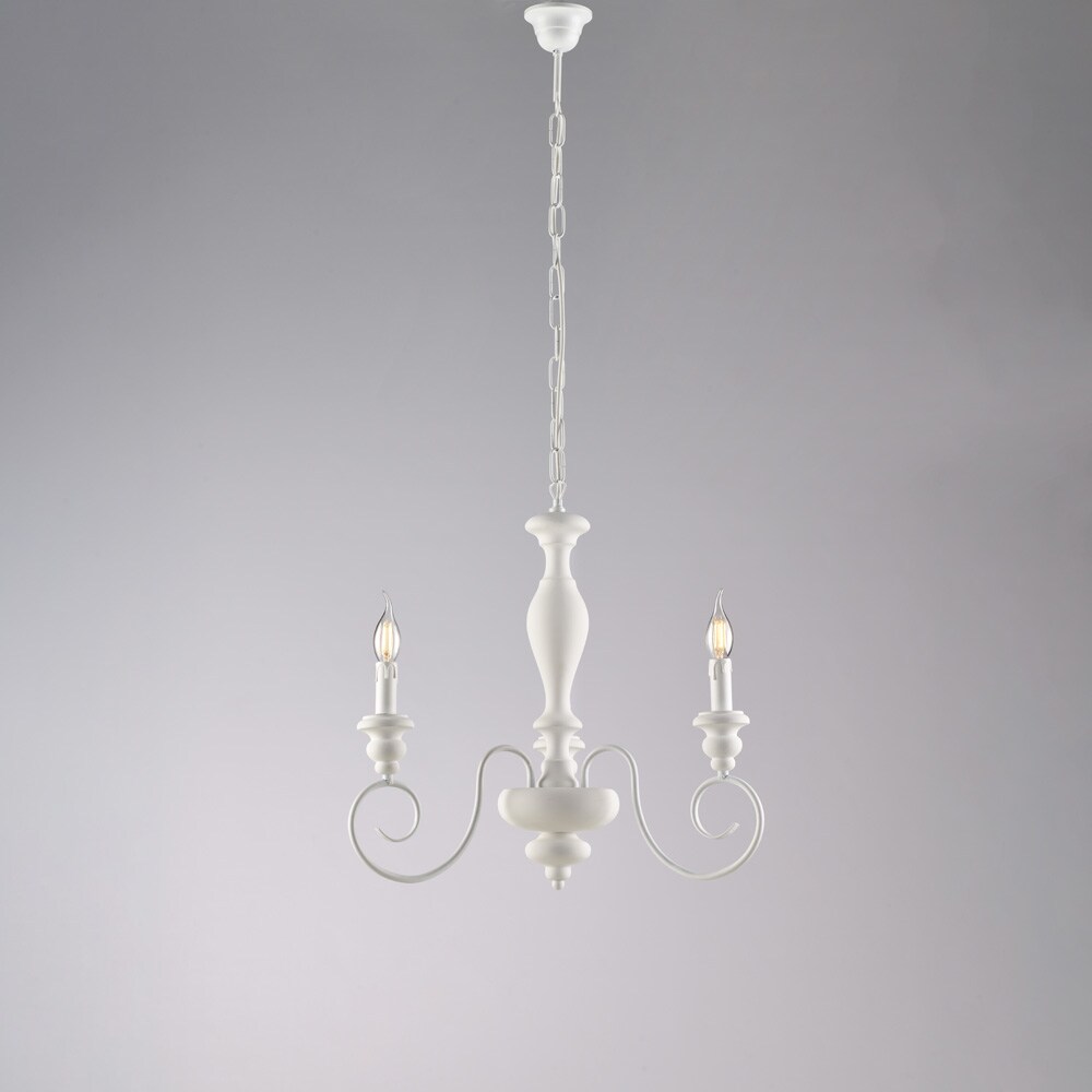 Bonetti Illumina Cascina - Shabby-Kronleuchter aus weiß lackiertem Holz und Eisen, 3 Lichter, 113 - Ø44 - BL265-3-BCO