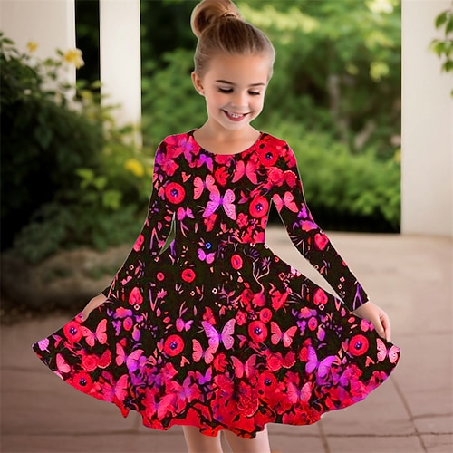 ragazze' 3D Animali Farfalla Vestito Manica lunga Stampa 3D Autunno Inverno Da mare Giornaliero Per eventi stile sveglio Informale Dolce Bambino 3-10 anni Vestito svasato Abito linea A Sopra il