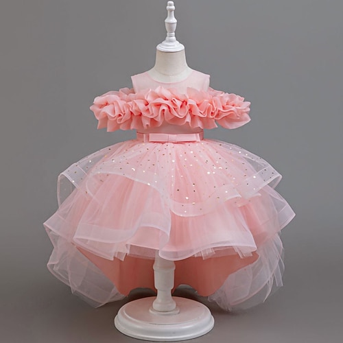 Bambino Da ragazza Vestito Fiore decorativo Manica corta Esterno Informale Con lustrini Di tendenza Dolce Poliestere Medio Abito casual Abito linea A Abito in tulle Estate Primavera 4 anni