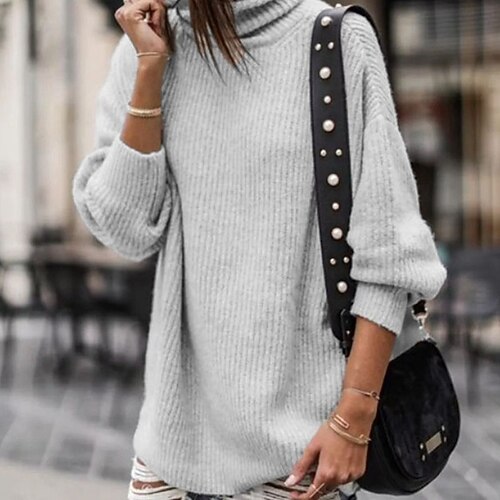 Per donna Felpa Maglione Elegante Moda Streetwear Tinta unica Dolcevita Lavorato a maglia Stampato Manica Lunga Top Regolari Maglia All'aperto Casa Lavoro Rosso bordeaux Nero Autunno Inverno