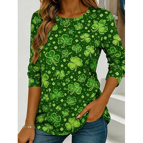 Festa di San Patrizio Per donna Maglietta Grafico Trifoglio Moda Elegante Casual Manica Lunga Girocollo Top Regolari Quotidiano Weekend Abbigliamento da vacanza Stampato Verde Estate Primavera Autunno