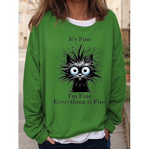 Per donna Felpe Grafico Lettera Casual Manica Lunga Girocollo Top Regolari Casuale Stampato Rosa Rosso Blu Verde Cachi Autunno Inverno