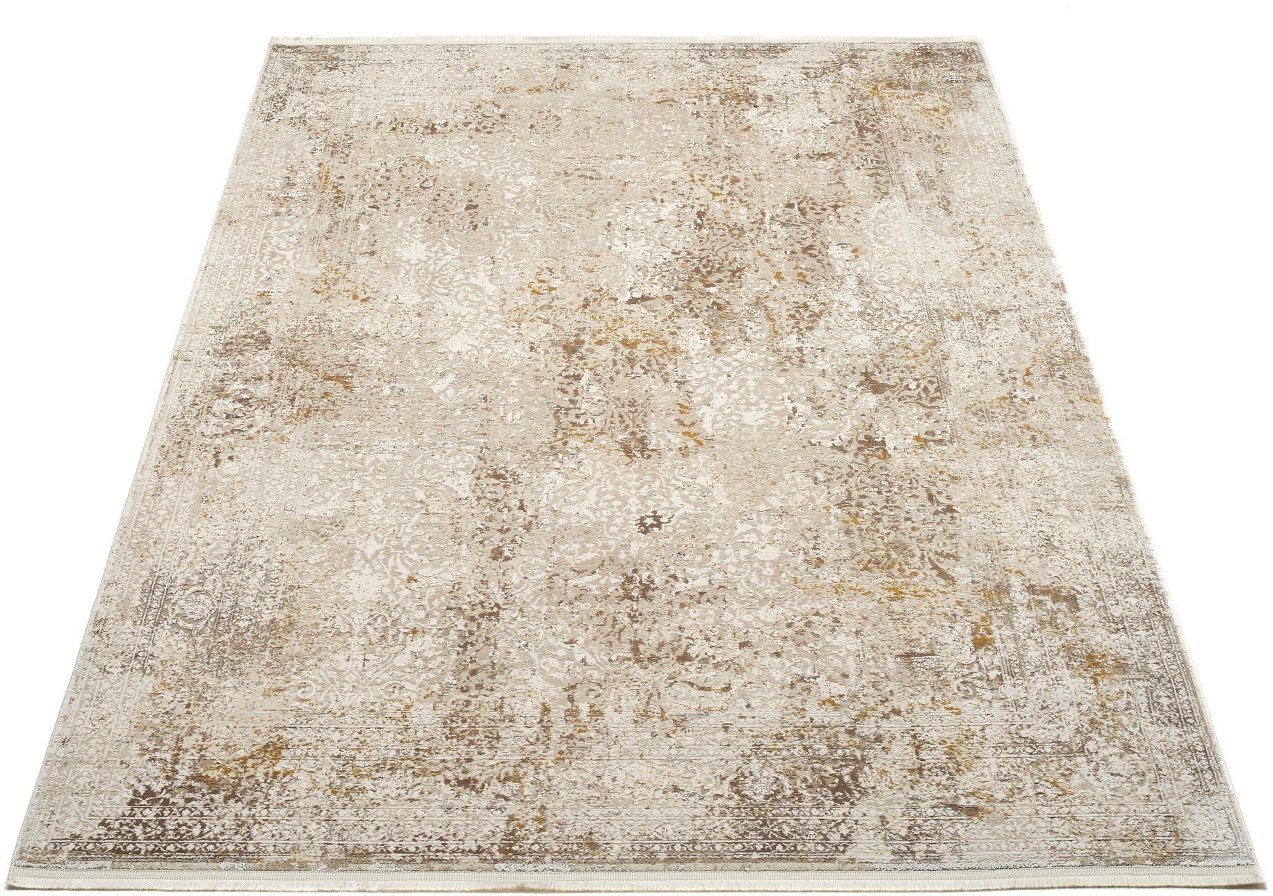 Teppich OCI DIE TEPPICHMARKE "BESTSELLER CAVA", beige (beige, goldfarben), B:240cm H:8mm L:240cm, Kunstfaser, Viskose, Teppiche, Fransenteppich, Glanz Viskose, mit Fransen, Hoch Tief Struktur, Vintage, Wohnzimmer