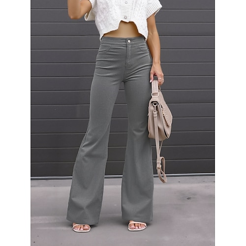 Per donna Pantaloni a Zampa Chinos Moda Streetwear Lunghezza intera Vita Alta Semplice Taglio alto Comodità All'aperto Micro-elastico Ufficio Streetwear Quotidiano Cenere Grigio verde Marrone scuro