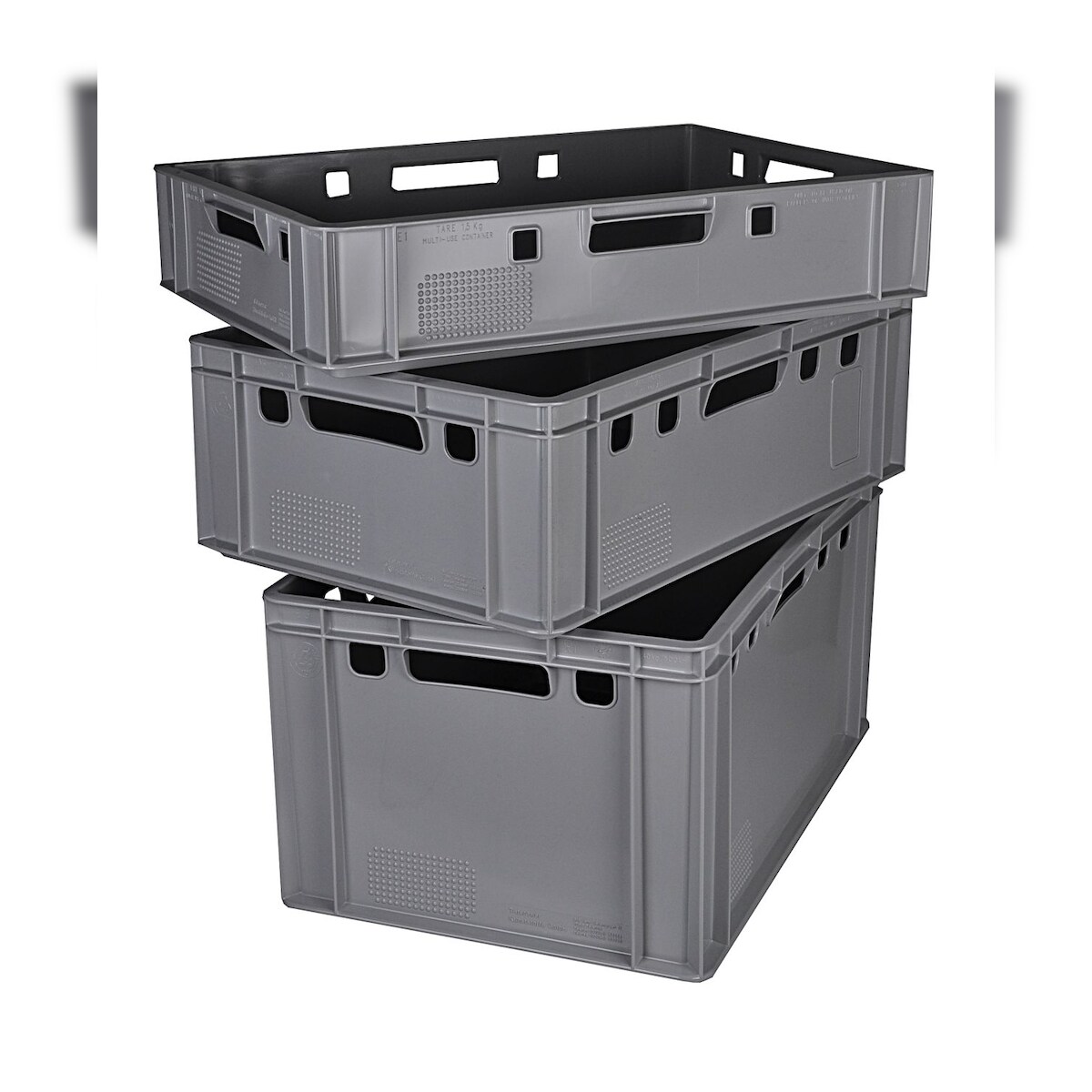 BURI Fleischkisten Kisten Eurobox lebensmittelecht - HDPE Metzgerkiste Box Lagerkiste E1 grau 2 Stück