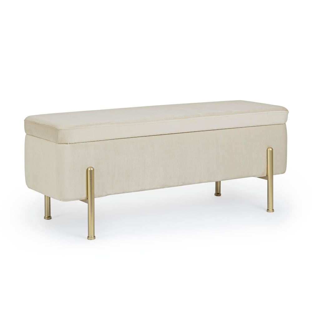 Banc coffre 2 places en velours et piétement or