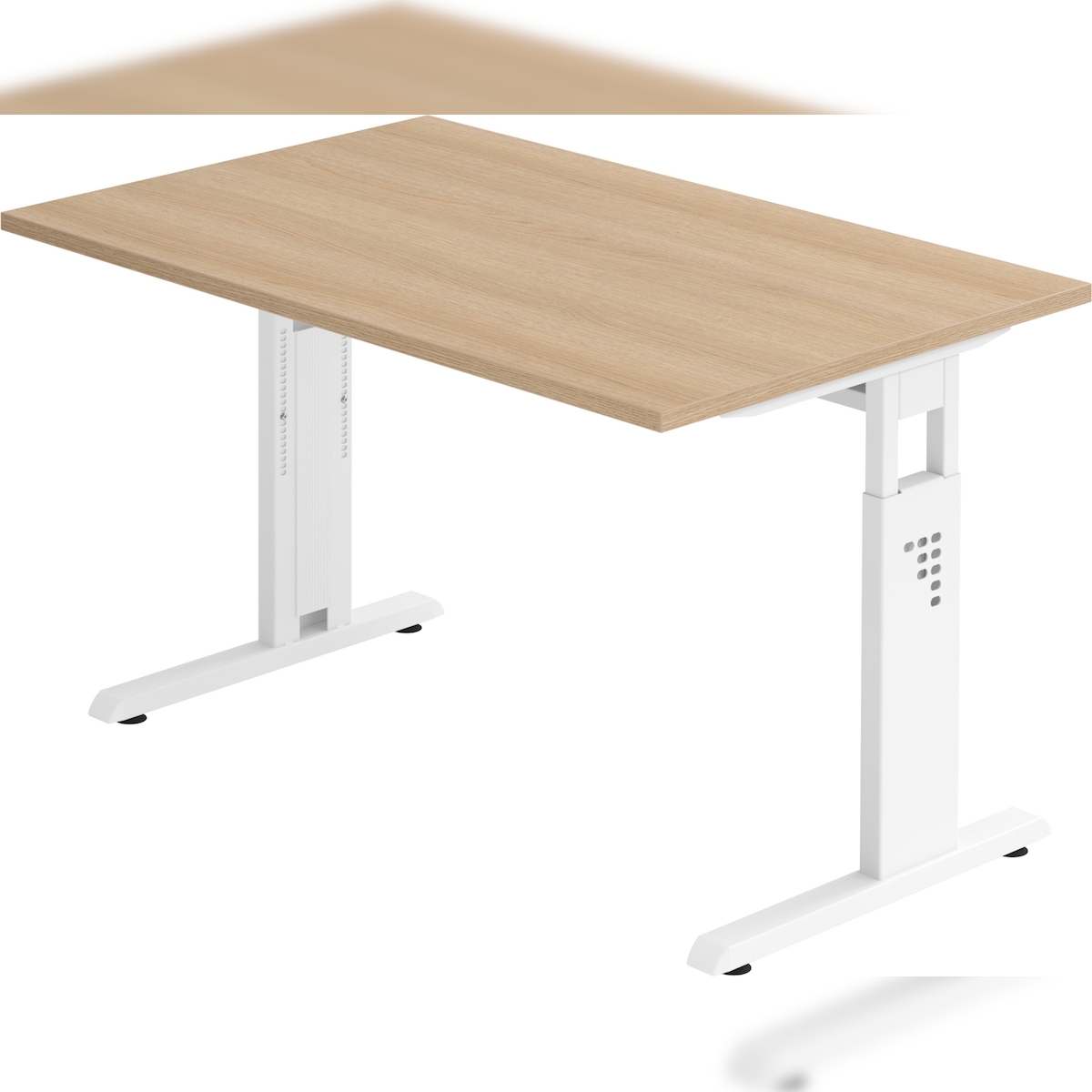 bümö höhenverstellbarer Schreibtisch 160 x 80 cm in Asteiche, Gestell weiß - Höhenverstellbar Elektrisch Stehpult mit 3-fach Speicher, Computertisch,