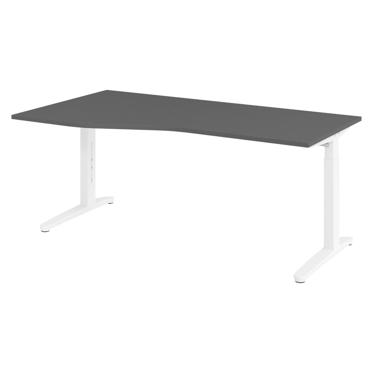 bümö Schreibtisch höhenverstellbar 180x100 cm in graphit, Metallgestell in weiß - Bürotisch groß, höhenverstellbarer Büroschreibtisch, Computertisch