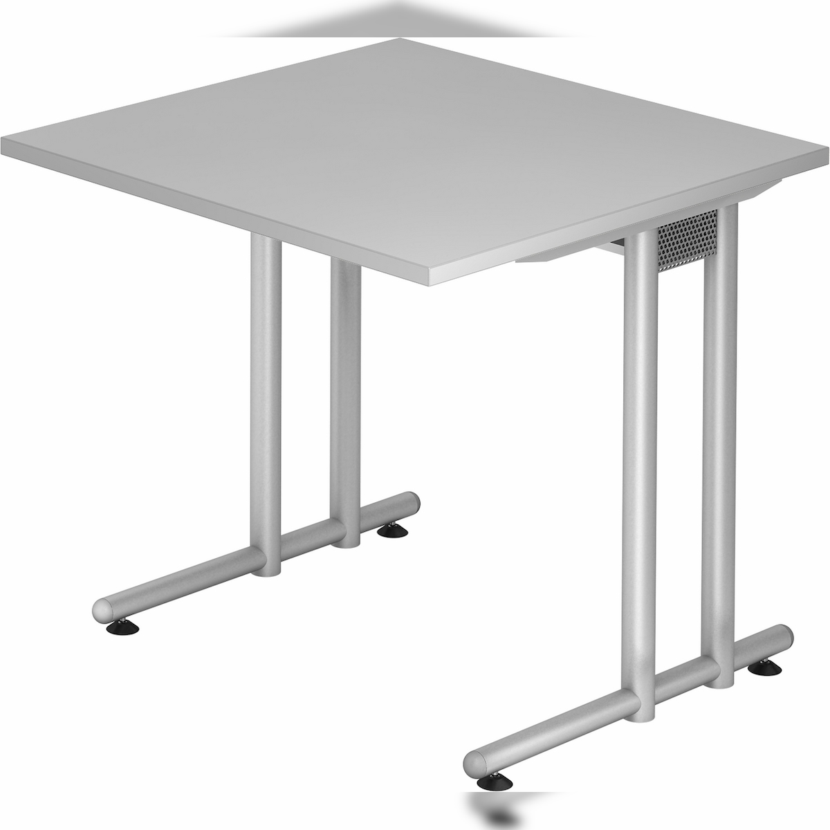 bümö Schreibtisch klein N-Serie 80x80 cm, Tischplatte aus Holz in grau, Gestell aus Metall in Silber - PC Tisch, kleiner Computertisch für's Büro,