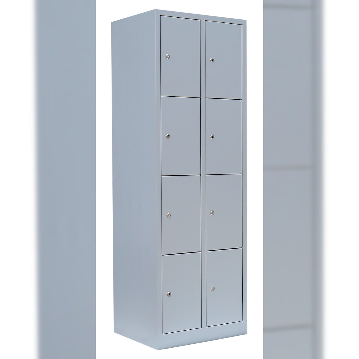Lüllmann® Schließfachschrank, 2 Abteile, 8 Fächer, 1800 x 600 x 500 mm, lichtgrau