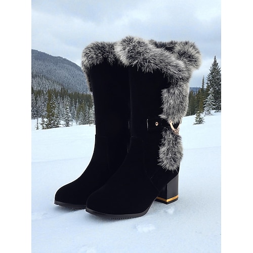 stivali invernali da donna foderati in pelliccia sintetica nera - stivali da neve in velluto con tacco spesso e dettagli dorati per il freddo, gite sugli sci e abiti da vacanza