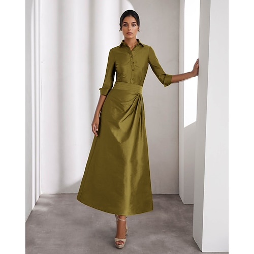 Abiti da cocktail A-Line per la madre della sposa elegante invitata a matrimonio lunghezza alla caviglia maniche lunghe colletto a camicia taffetà con spacco