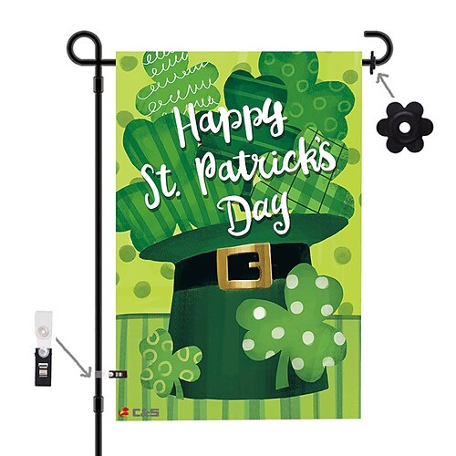 bandiera da giardino per il giorno di San Patrizio, decorazione primaverile per il cortile, design con trifoglio irlandese, bandiera per feste di Natale per giardino esterno, decorazioni per la festa