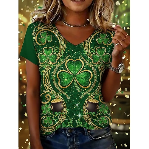 Festa di San Patrizio Per donna Maglietta Grafico Trifoglio Vintage Elegante Classico Manica Corta Scollo a V Top Regolari Quotidiano Weekend Abbigliamento da vacanza Stampato Verde Estate Primavera