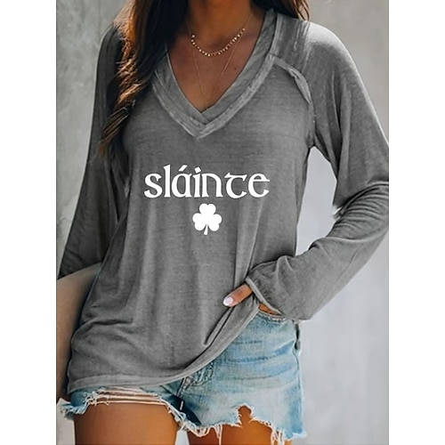 T-Shirt Donna per il Giorno di San Patrizio con Grafica Floreale Piante Elegante Vintage Stilosa Manica Lunga Collo a V Top Regolari per Uscite Giornalieri Weekend Stampa Blu Nero Bianco Verde Grigio