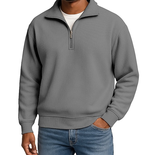 Per uomo Maglia Velluto a coste Maglione Felpa con zip corta Aalbicocca Nero Marrone Grigio Colletto Mao Semplice Testurizzato Sport Outdoor Casuale Quotidiano Streetwear Cool Abbigliamento Sportivo