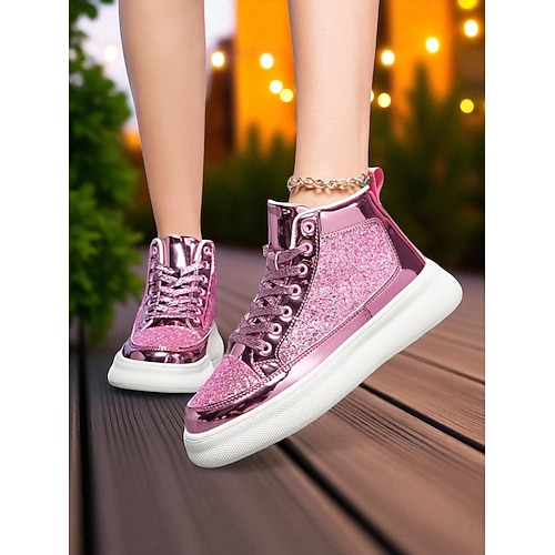 sneakers alte da donna con glitter dorati, scarpe casual con lacci metallizzati lucidi per la vita notturna, le feste e la moda da discoteca