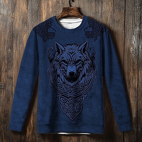 Per uomo Maglia Nero Blu Grigio Girocollo Lupo Nodo celtico Stampato Casuale Quotidiano Ferie Vintage Vichingo Autunno Inverno Abbigliamento Felpe con cappuccio Felpe
