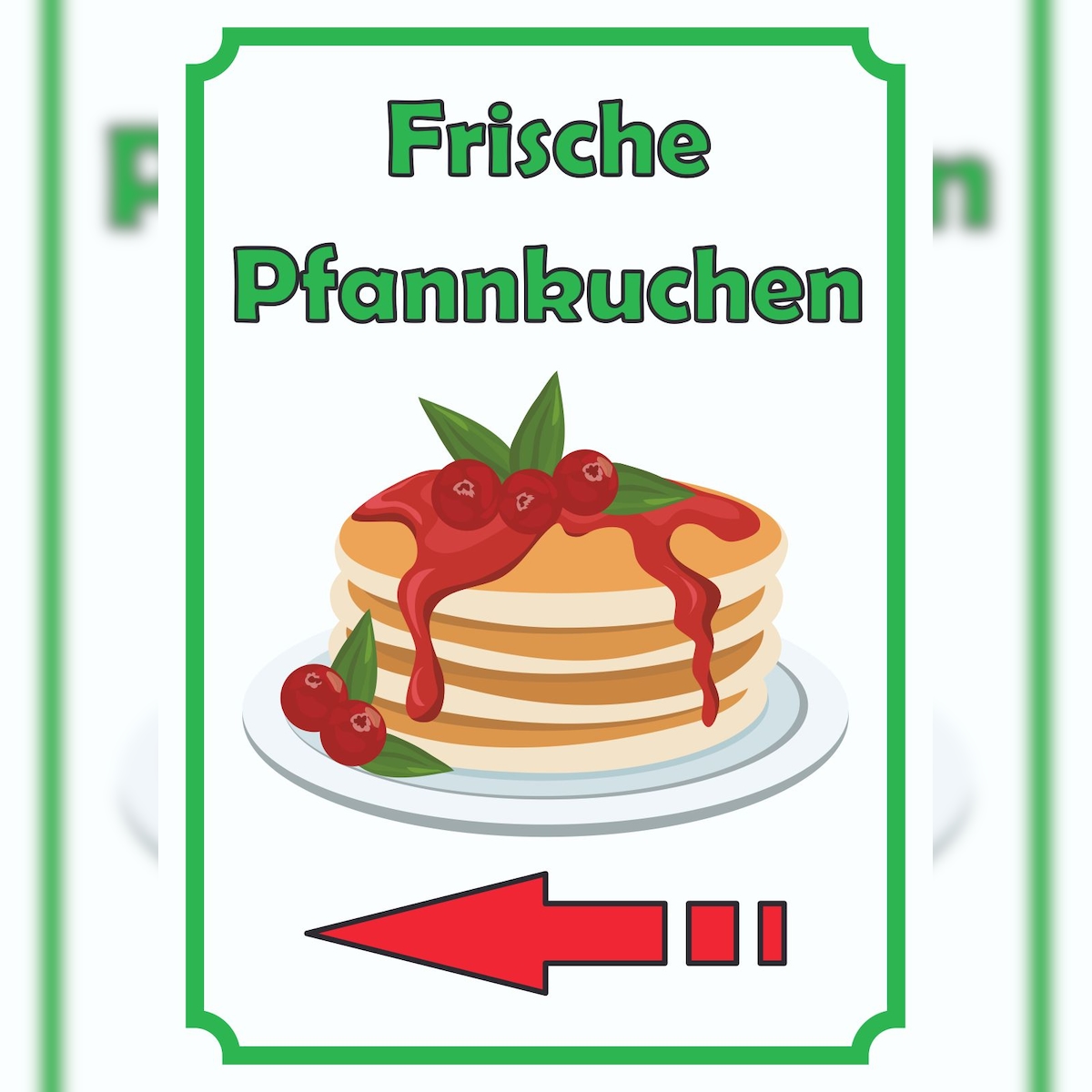 HB-Druck Frische Pfannkuchen Schild Hochkant mit Pfeil links A1 Rückseite selbstklebend