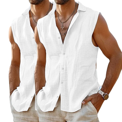 Per uomo Camicia Camicia di lino Camicia Estiva Abbigliamento da spiaggia Camicia con Bottoni Maglietta senza maniche Semplice Vacanza Crociera Bianco rosa Pink Blu Bianco Bianco Bianco blu