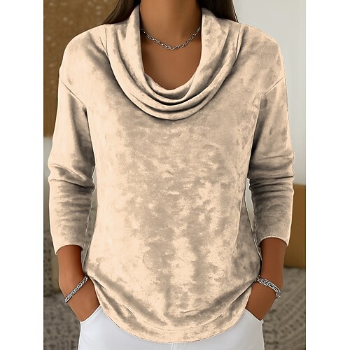 Per donna Tunica Maglietta Tinta unica Grafico Elegante Vintage Moda Manica Lunga Scollo a Cascata Top Regolari Quotidiano Uscire Weekend Stampato A Strati Blu Rosa Rosso Marrone Verde Autunno Inverno