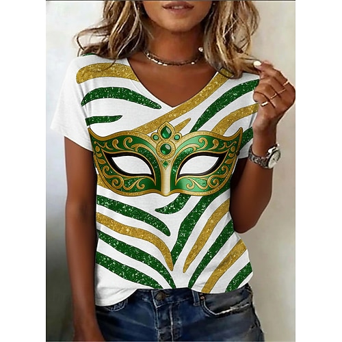 Carnevale Per donna Maglietta Grafico Astratto Vintage Casual Manica Corta Scollo a V Top Regolari Quotidiano Stampato Bianco Viola Estate