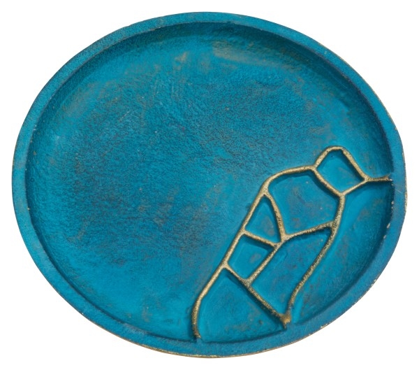Kerzenteller aus Alu in türkis/gold, Durchmesser 14 cm