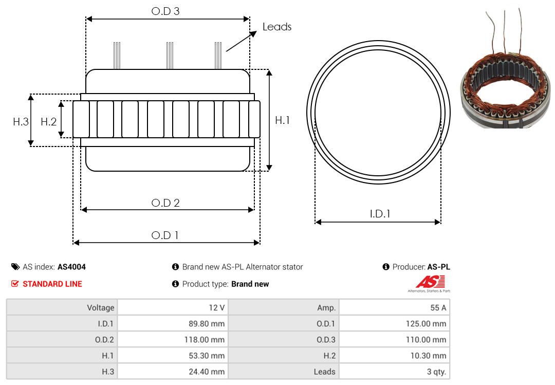 AS-PL Stator, Generator AS4004 Universal 12V 55A für FIAT 9939969