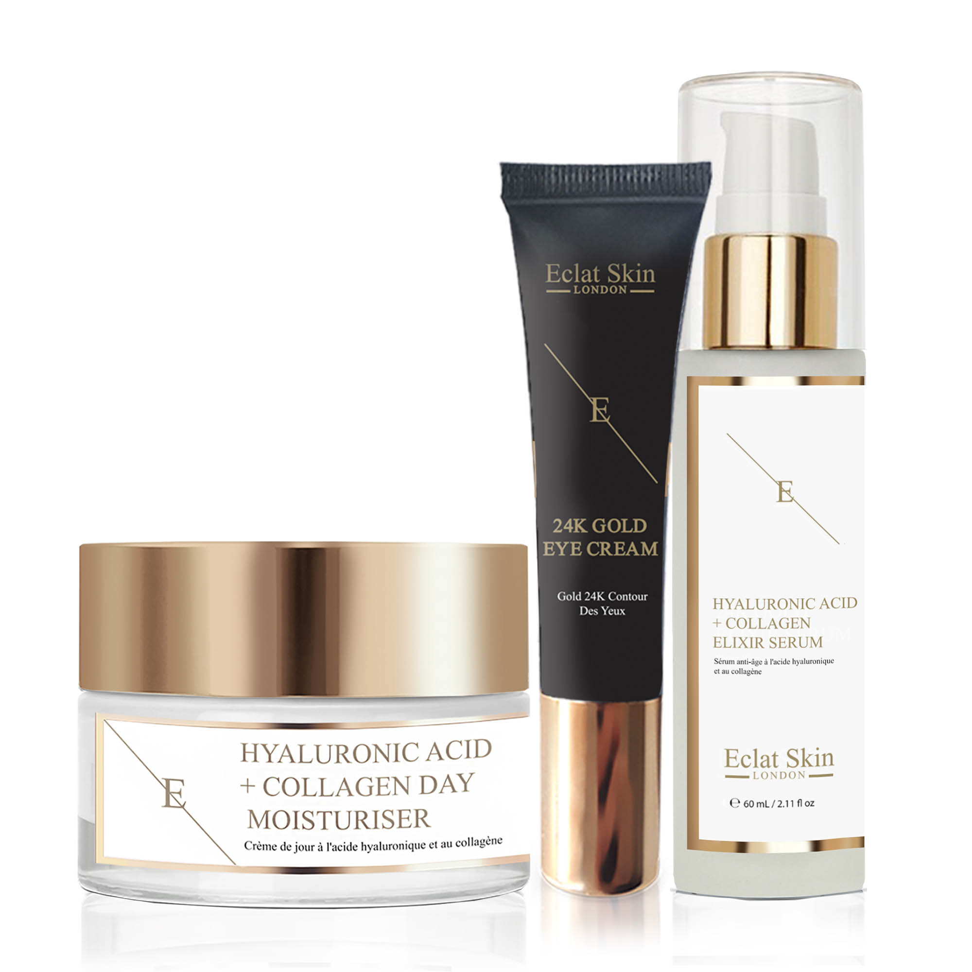 Eclat Skin London Womens Hyaluronic Acid & Collagen Day Cream + & Serum + Under Eye 24K Gold - One Size