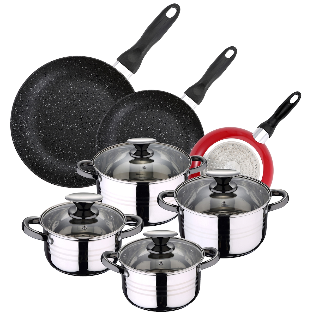 San Ignacio - Dina-Kochgeschirr: 4 Töpfe mit Deckel und Set mit 3 Pfannen Ø16/20/24 cm