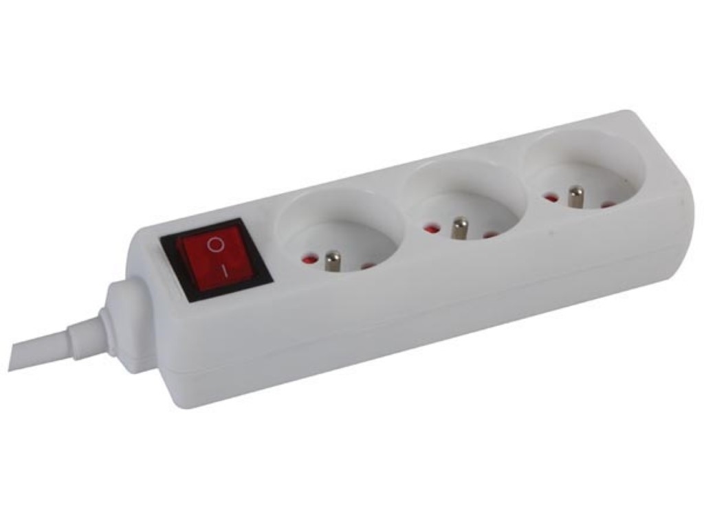 Perel Steckdosenleiste mit Schalter, 3 Steckdosen Typ E, Kabel 1.5 m, 3G1.5, Innenbereich, Weiß