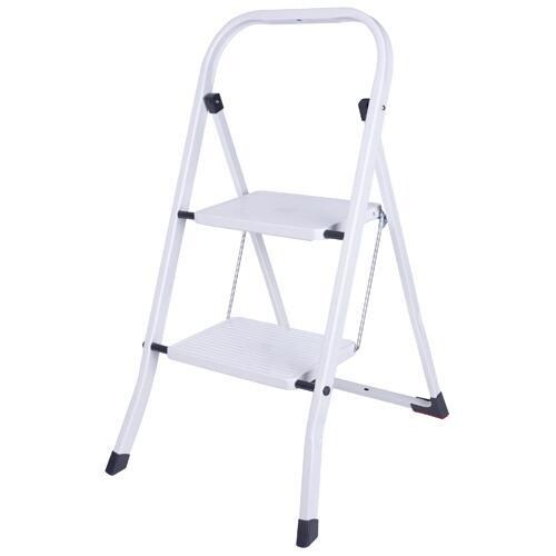 PROREGAL Small Giraffe Einseitige Metall-Klappleiter | 2 Stufen | Weiß |120kg Tragkraft | Leiter, Trittleiter, Stufenleiter, Haushaltsleiter