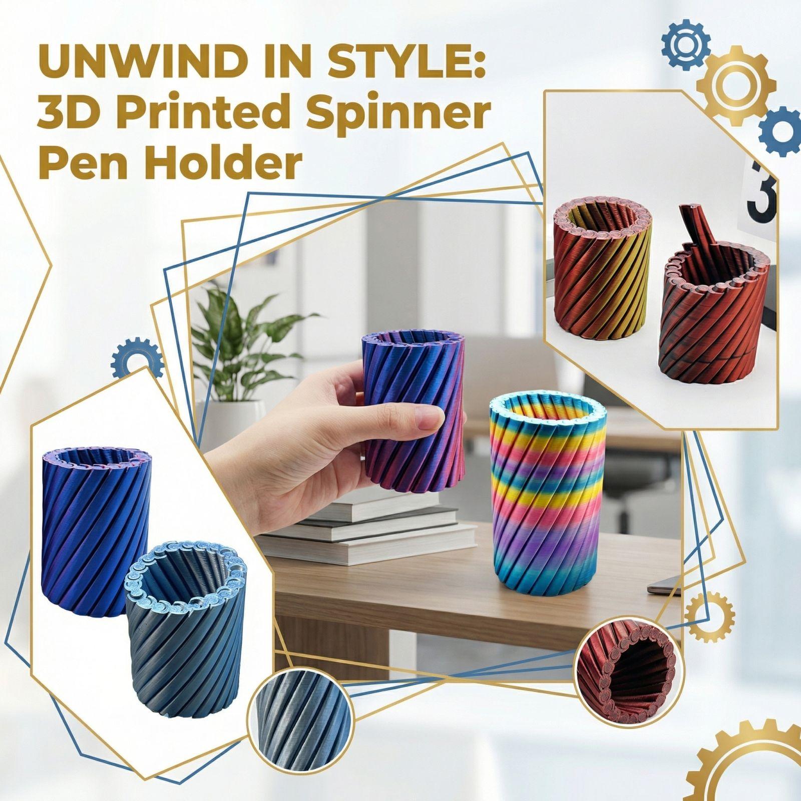 3D Printed Rotating Decompression Pen Holder - Two-tone Gradient Desktop Storage Box, Rotating Stress-relieving Toy, Available In Multiple Colors.