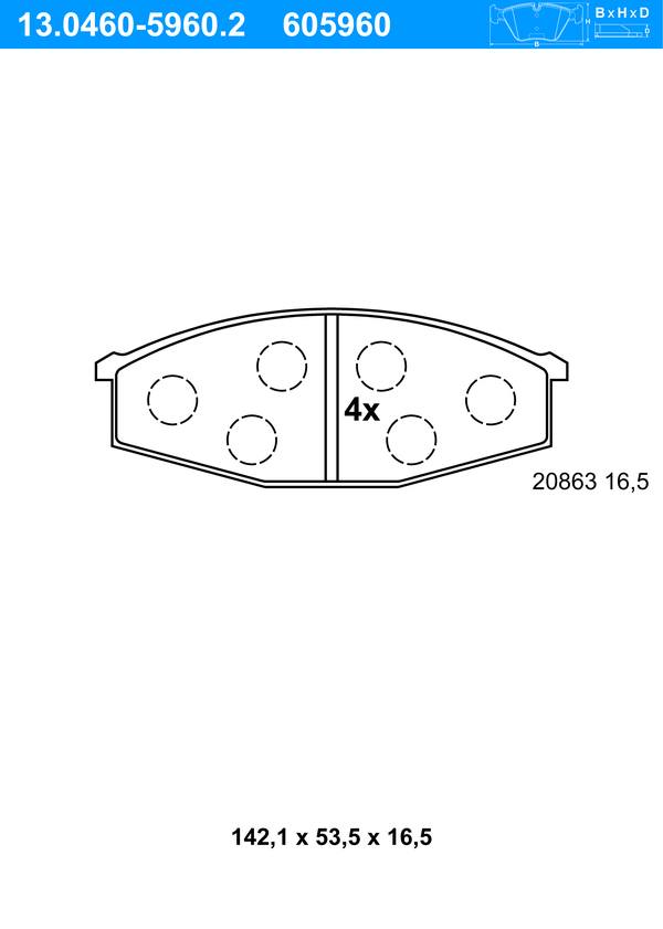 ATE Bremsbelagsatz, Scheibenbremse 13.0460-5960.2 vorne rechts links für NISSAN 41060-C7025 41060-G9800 41060-T7893