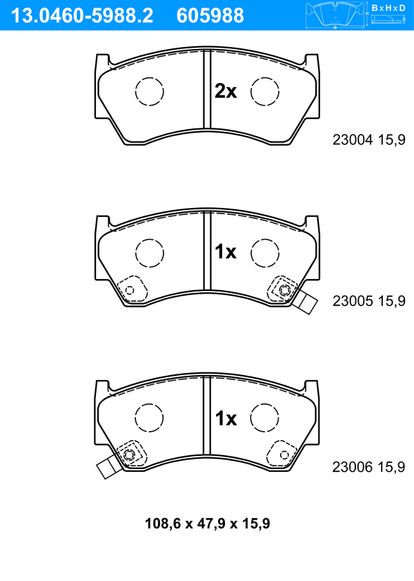 ATE Bremsbelagsatz, Scheibenbremse 13.0460-5988.2 vorne rechts links für NISSAN 41060-3N390 41060-1N890 D1060-1N090